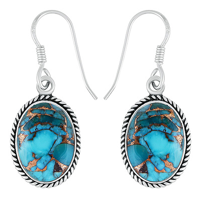 Beautiful Twisted Wire Work Around Oyster Copper Turquoise Oval Shape 925 Sterling Solid Silver Dangle Earrings