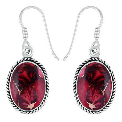 Beautiful Twisted Wire Work Around Peacock Dahlia Copper Turquoise Oval Shape 925 Sterling Solid Silver Dangle Earrings