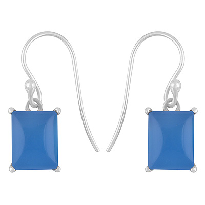 Home | Silver Earrings | Cabochon Earrings | Alluring Studded Gemstone Blue Chalcedony Rectangle Shape 925 Sterling Solid Silver Dangle Earrings
