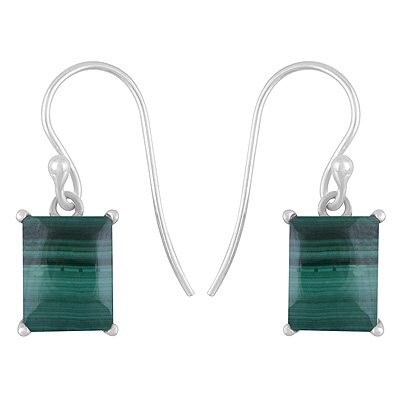 Home | Silver Earrings | Cabochon Earrings | Alluring Studded Gemstone Malachite Rectangle Shape 925 Sterling Solid Silver Dangle Earrings