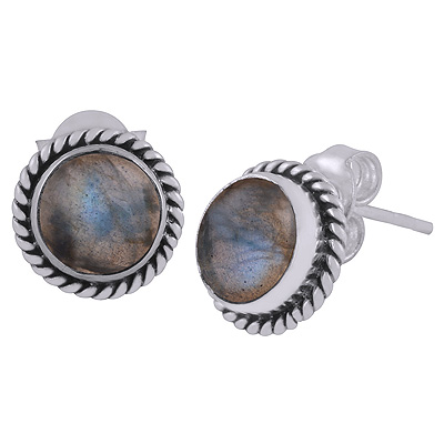 Home | Silver Earrings | Cabochon Stone Studs | Gorgeous Twisted Wire Work Around Labradorite Round Shape 925 Sterling Solid Silver Stud Earrings