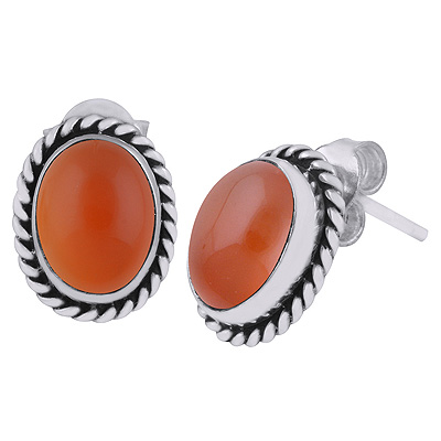Home | Silver Earrings | Cabochon Stone Studs | Authentic Wire Work Around Carnelian Oval Shape 925 Sterling Solid Silver Stud Earrings