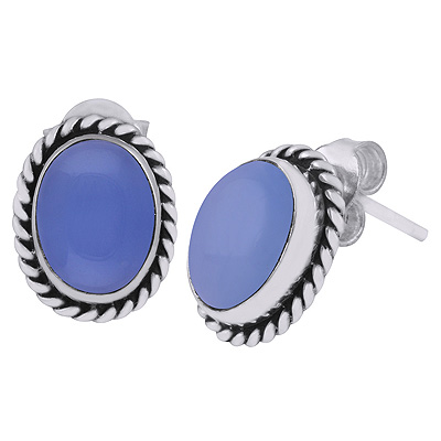 Home | Silver Earrings | Cabochon Stone Studs | Authentic Wire Work Around Blue Chalcedony Oval Shape 925 Sterling Solid Silver Stud Earrings