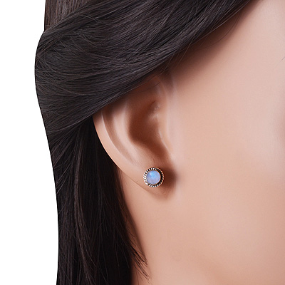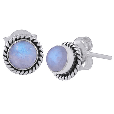 Home | Silver Earrings | Cabochon Stone Studs | Authentic Wire Work Around Rainbow Moonstone Round Shape 925 Sterling Solid Silver Studs Earrings