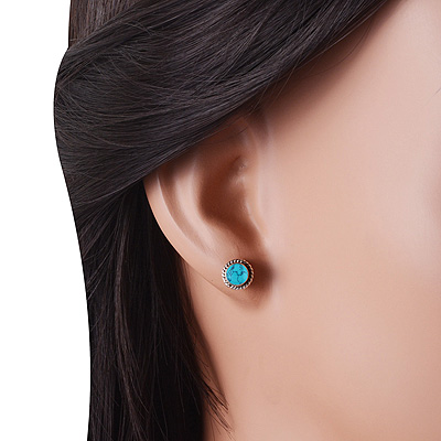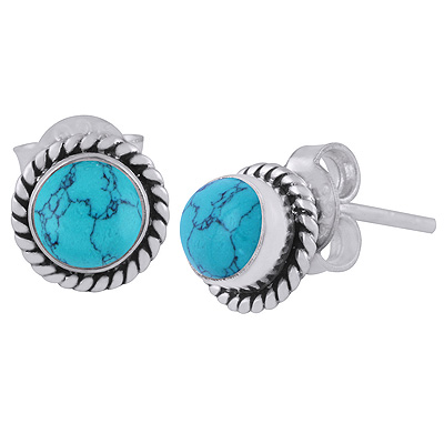 Home | Silver Earrings | Cabochon Stone Studs | Authentic Wire Work Around Turquoise Round Shape 925 Sterling Solid Silver Studs Earrings