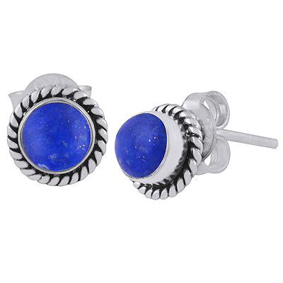 Home | Silver Earrings | Cabochon Stone Studs | Authentic Wire Work Around Lapis Round Shape 925 Sterling Solid Silver Studs Earrings