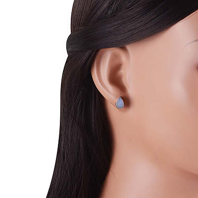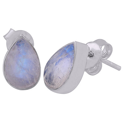 Home | Silver Earrings | Cabochon Stone Studs | Plain Collet Natural Rainbow Moonstone Pear Shape 925 Sterling Solid Silver Stud Earrings