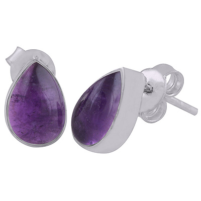 Home | Silver Earrings | Cabochon Stone Studs | Plain Collet Natural Amethyst Pear Shape 925 Sterling Solid Silver Stud Earrings