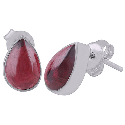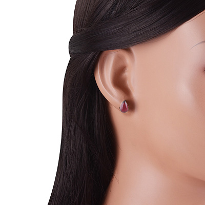 Home | Silver Earrings | Cabochon Stone Studs | Plain Collet Natural Garnet Pear Shape 925 Sterling Solid Silver Stud Earrings
