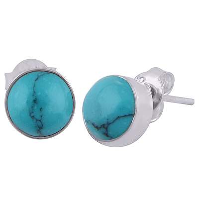 Home | Silver Earrings | Cabochon Stone Studs | Gorgeous Gemstone Seated Turquoise Round Shape 925 Sterling Solid Silver Stud Earrings