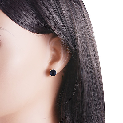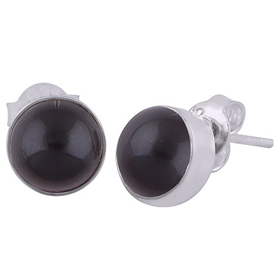 Home | Silver Earrings | Cabochon Stone Studs | Gorgeous Gemstone Seated Black Onyx Round Shape 925 Sterling Solid Silver Stud Earrings
