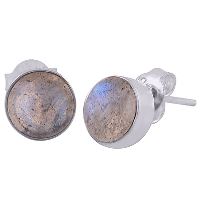 Home | Silver Earrings | Cabochon Stone Studs | Gorgeous Gemstone Seated Labradorite Round Shape 925 Sterling Solid Silver Stud Earrings