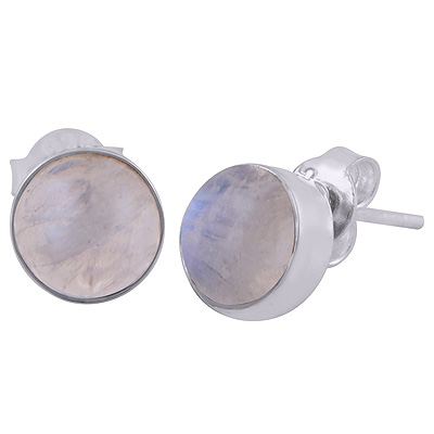 Home | Silver Earrings | Cabochon Stone Studs | Gorgeous Gemstone Seated Rainbow Moonstone Round Shape 925 Sterling Solid Silver Stud Earrings