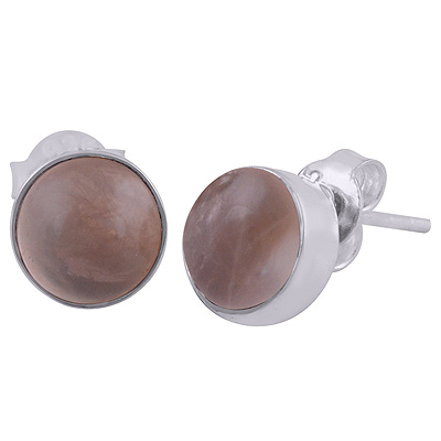 Home | Silver Earrings | Cabochon Stone Studs | Gorgeous Gemstone Seated Rose Quartz Round Shape 925 Sterling Solid Silver Stud Earrings