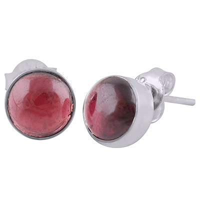 Home | Silver Earrings | Cabochon Stone Studs | Gorgeous Gemstone Seated Garnet Round Shape 925 Sterling Solid Silver Stud Earrings