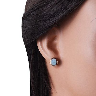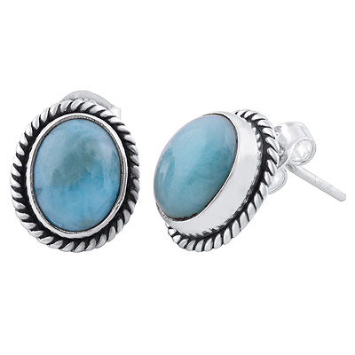 Home | Silver Earrings | Cabochon Stone Studs | Authentic Wire Work Around Larimar Oval Shape 925 Sterling Solid Silver Studs Earrings