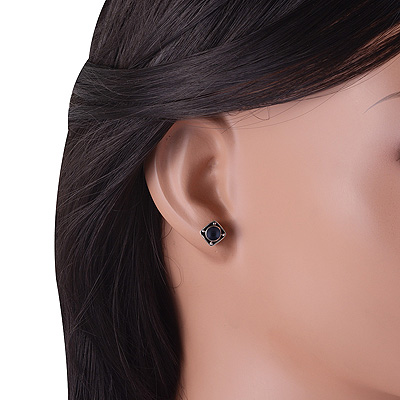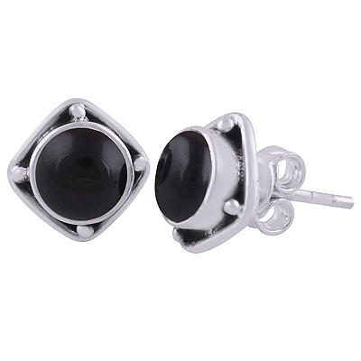 Home | Silver Earrings | Cabochon Stone Studs | Alluring Oxidised Work Around Black Onyx Round Shape 925 Sterling Solid Silver Stud Earrings