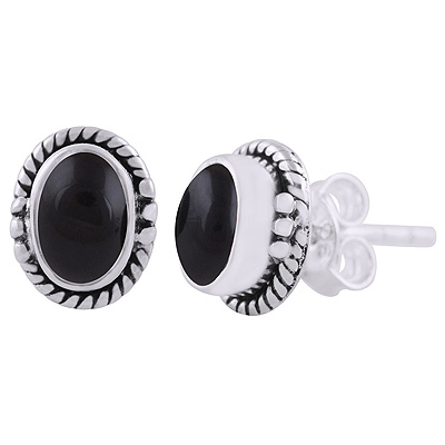 Home | Silver Earrings | Cabochon Stone Studs | Beautifully Handcrafted Work Around Black Onyx Oval Shape 925 Sterling Solid Silver Stud Earrings