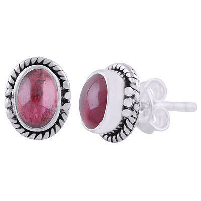 Home | Silver Earrings | Cabochon Stone Studs | Beautifully Handcrafted Work Around Garnet Oval Shape 925 Sterling Solid Silver Stud Earrings