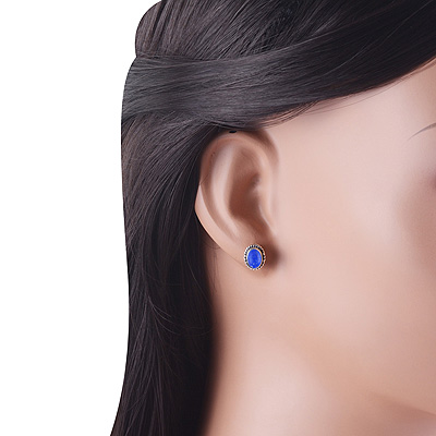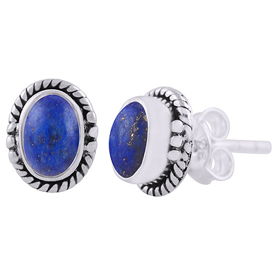 Home | Silver Earrings | Cabochon Stone Studs | Beautifully Handcrafted Work Around Lapis Oval Shape 925 Sterling Solid Silver Stud Earrings