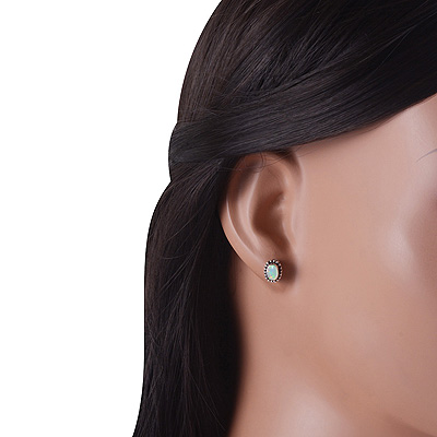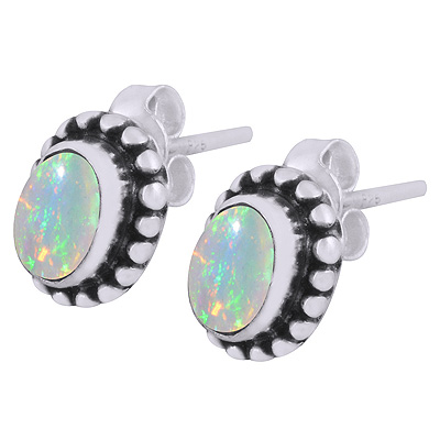 Gorgeous Rawa Work Around Ethiopian Opal Oval Shape 925 Sterling Solid Silver Stud Earrings