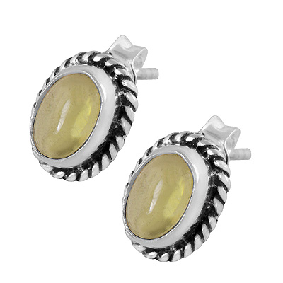 Home | Silver Earrings | Cabochon Stone Studs | Authentic Wire Work Around Peridot Oval Shape 925 Sterling Solid Silver Studs Earrings