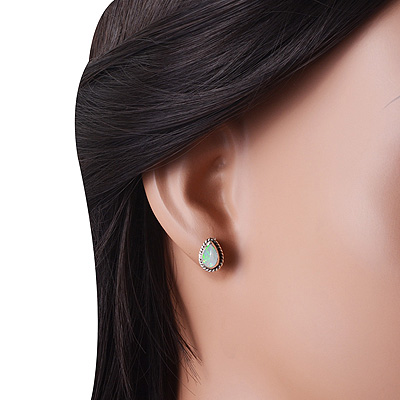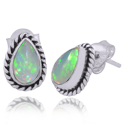Authentic Wire Work Around Ethiopian Opal Pear Shape 925 Sterling Solid Silver Stud Earrings