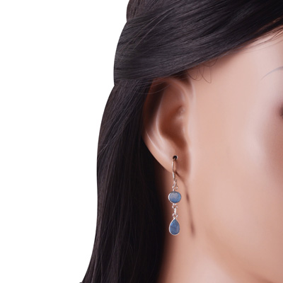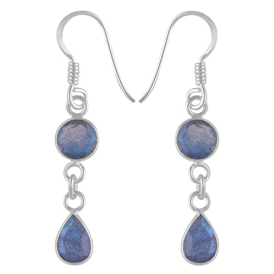 Home | Silver Earrings | Cut Stone Earrings | Gorgeous Two Stone Bezel Labradorite Round,Pear Shape 925 Sterling Solid Silver Dangle Earrings