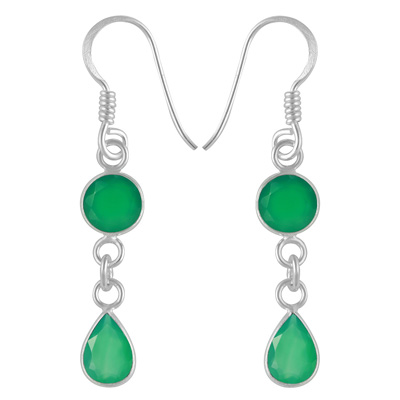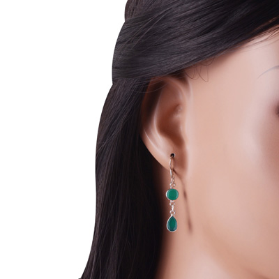 Home | Silver Earrings | Cut Stone Earrings | Gorgeous Two Stone Bezel Green Onyx Round,Pear Shape 925 Sterling Solid Silver Dangle Earrings
