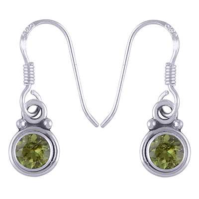 Home | Silver Earrings | Cut Stone Earrings | Beautiful Plain Peridot Round Shape 925 Sterling Solid Silver Dangle Earrings
