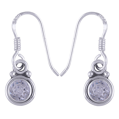 Beautiful Plain White Cubic Zirconia Round Shape 925 Sterling Solid Silver Dangle Earrings