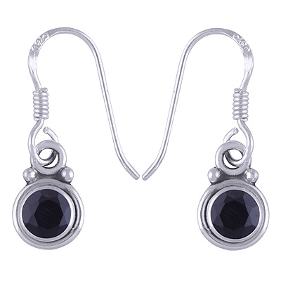 Home | Silver Earrings | Cut Stone Earrings | Beautiful Plain Black Onyx Round Shape 925 Sterling Solid Silver Dangle Earrings