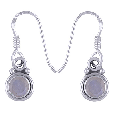 Home | Silver Earrings | Cut Stone Earrings | Beautiful Plain Rainbow Moonstone Round Shape 925 Sterling Solid Silver Dangle Earrings