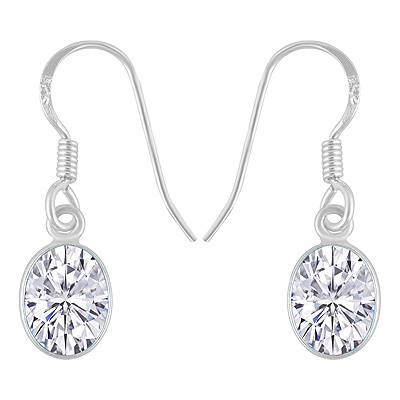 Beautifully Bezel Seated Gemstone White Cubic Zirconia Oval Shape 925 Sterling Solid Silver Dangle Earrings