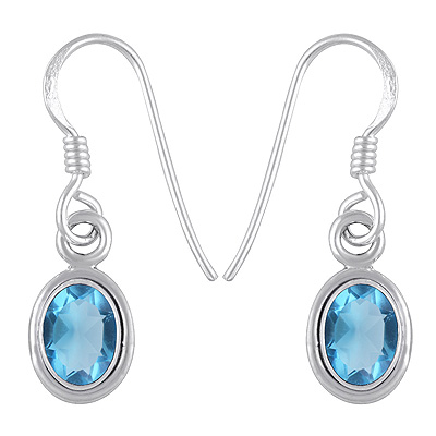 Home | Silver Earrings | Cut Stone Earrings | Plain Wire Around Blue Topaz Oval Shape 925 Sterling Solid Silver Dangle Earrings