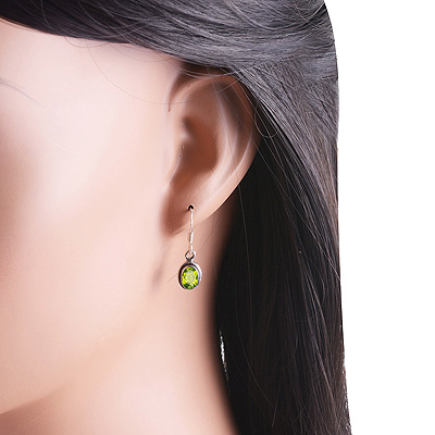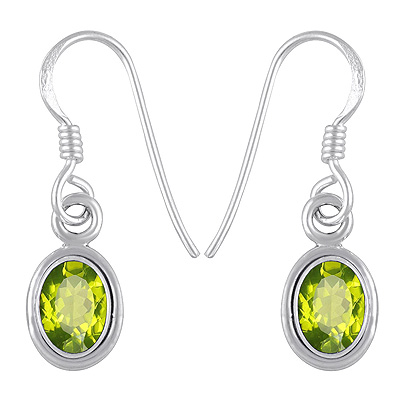 Home | Silver Earrings | Cut Stone Earrings | Plain Wire Around Peridot Oval Shape 925 Sterling Solid Silver Dangle Earrings