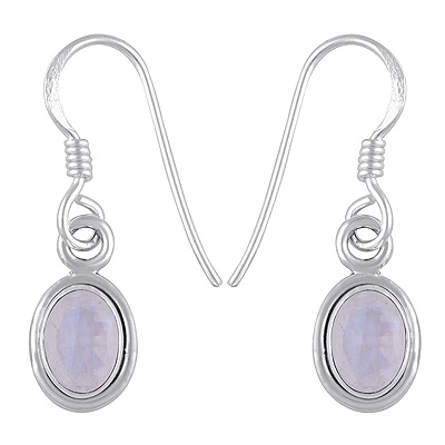 Home | Silver Earrings | Cut Stone Earrings | Plain Wire Around Rainbow Moonstone Oval Shape 925 Sterling Solid Silver Dangle Earrings