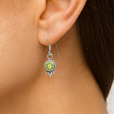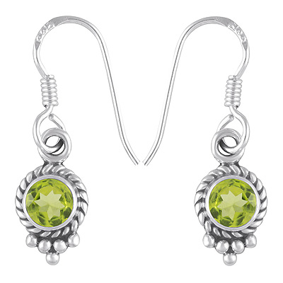 Alluring Twisted Wire & Rawa Work Around Peridot Round Shape 925 Sterling Solid Silver Dangle Earrings