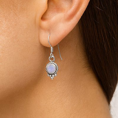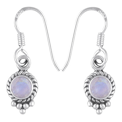 Alluring Twisted Wire & Rawa Work Around Rainbow Moonstone Round Shape 925 Sterling Solid Silver Dangle Earrings