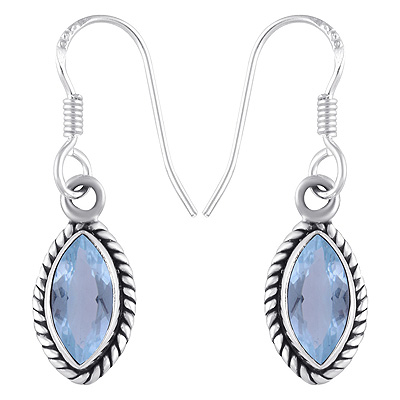 Stunning Twisted Wire Work Around Blue Topaz Marquise Shape 925 Sterling Solid Silver Dangle Earrings