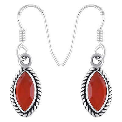 Stunning Twisted Wire Work Around Carnelian Marquise Shape 925 Sterling Solid Silver Dangle Earrings