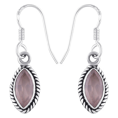 Stunning Twisted Wire Work Around Rose Quartz Marquise Shape 925 Sterling Solid Silver Dangle Earrings