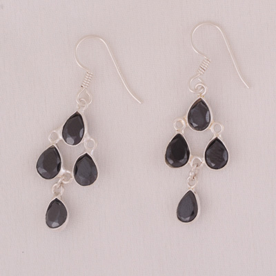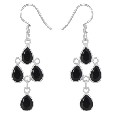 Home | Silver Earrings | Cut Stone Earrings | Chandelier Beautiful Black Onyx Pear Shape 925 Sterling Solid Silver Dangle Earrings