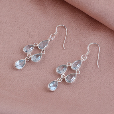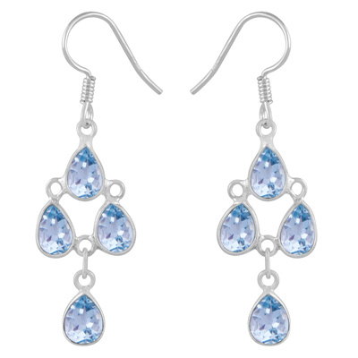 Home | Silver Earrings | Cut Stone Earrings | Chandelier Beautiful Blue Topaz Pear Shape 925 Sterling Solid Silver Dangle Earrings