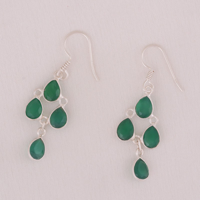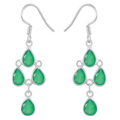 Home | Silver Earrings | Cut Stone Earrings | Chandelier Beautiful Green Onyx Pear Shape 925 Sterling Solid Silver Dangle Earrings