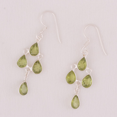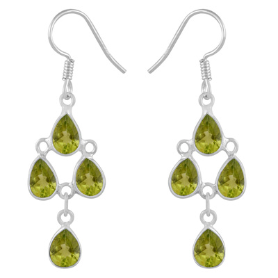 Home | Silver Earrings | Cut Stone Earrings | Chandelier Beautiful Peridot Pear Shape 925 Sterling Solid Silver Dangle Earrings
