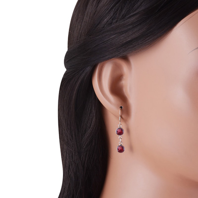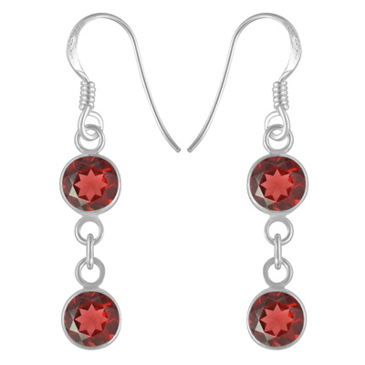 Home | Silver Earrings | Cut Stone Earrings | Stunning Two Stone Bezel Garnet Round Shape 925 Sterling Solid Silver Dangle Earrings