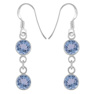 Home | Silver Earrings | Cut Stone Earrings | Stunning Two Stone Bezel Blue Topaz Round Shape 925 Sterling Solid Silver Dangle Earrings