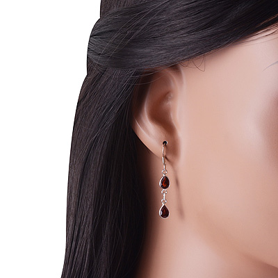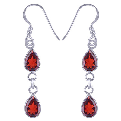 Home | Silver Earrings | Cut Stone Earrings | Beautiful Two Stone Beze Garnet Pear Shape 925 Sterling Solid Silver Dangle Earrings
