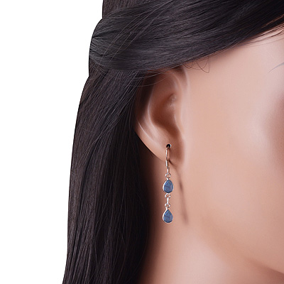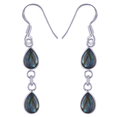 Home | Silver Earrings | Cut Stone Earrings | Beautiful Two Stone Beze Labradorite Pear Shape 925 Sterling Solid Silver Dangle Earrings